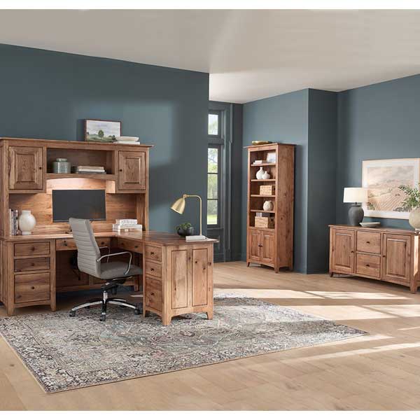 Dover Desk 2865-D is shown in Rustic Hickory with Almond stain.
