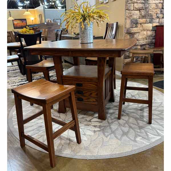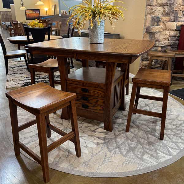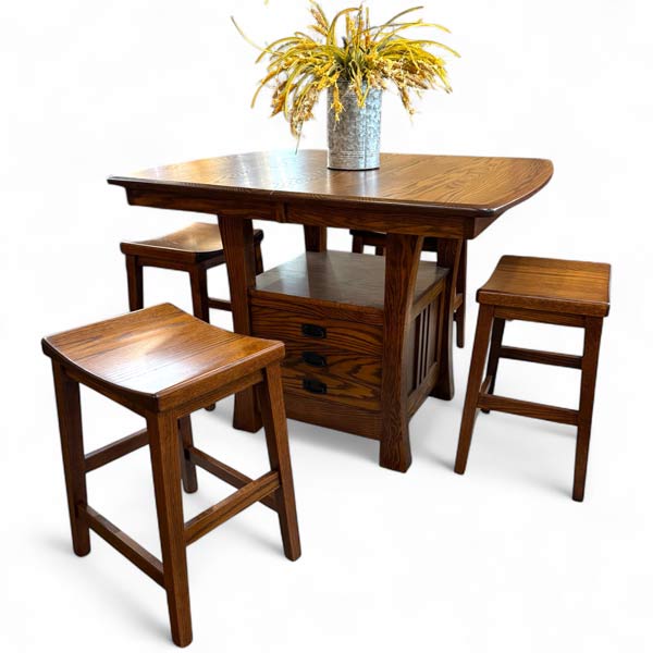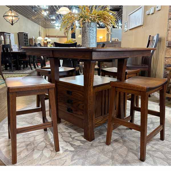 IN-STOCK – Arts & Crafts Cabinet Table & 4 Coby 24″H Barstools